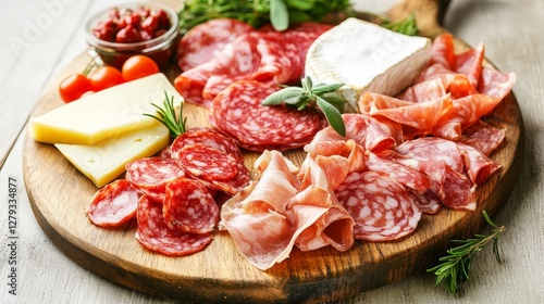 Charcuterie Board with Cheese, Meats, and Fresh Ingredients Displayed