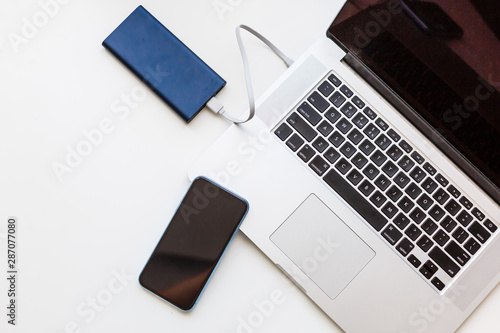 Charging of mobile phone and laptop computer new technology concept