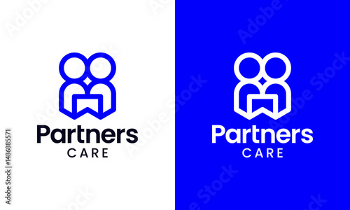 Charity logo design. Abstract people care or partners design holding a box symbol graphic icon