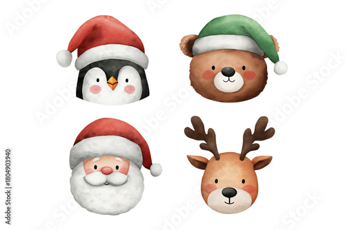 Charming Christmas Character Portraits Hand Drawn Watercolor Art