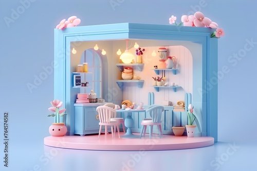 Charming Miniature Room with Cozy Pastel Decor and Whimsical Floral Accents