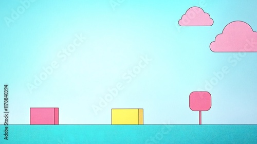 Charming Minimalist Digital Illustration: Playful Shapes Leap Across a Calm Landscape. AI Generated