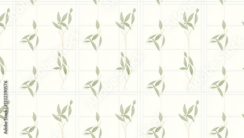 Charming Shabby Chic Seamless Tile Pattern: Distressed Bamboo Leaves with Soft Pastel Accents on White Background for Stylish Spaces - Cute Vector Illustration