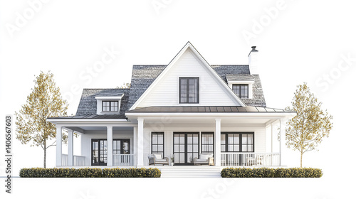 Charming white house with porch and trees, ideal for everyday living