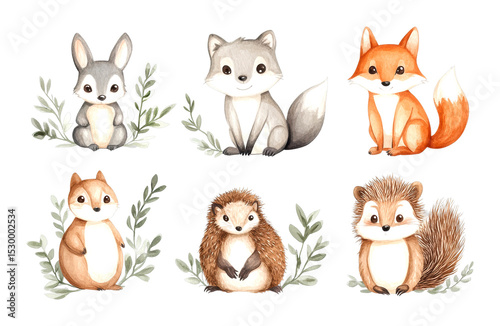 Charming woodland animals nature scene cute animal art whimsical isolated on transparent background