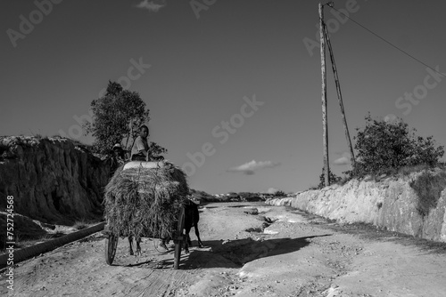 Charrette sur une piste accidentée