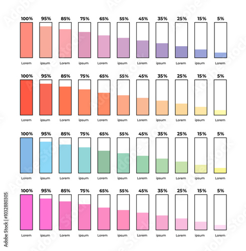 Chart, column graph, infographic elements with pastel gradient colours. 10% to 100% number text. Trendy vector flat design interface illustration inforchart for app ui ux web banner button isolated