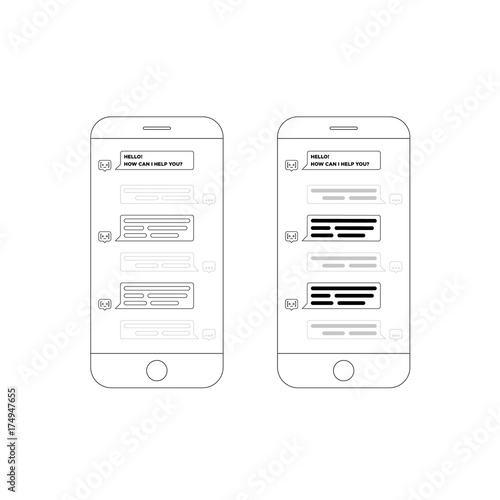 Chatbot concept. Man chatting with chat bot on smartphone. Vector illustration
