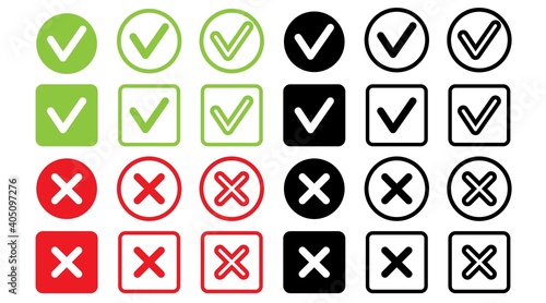 Check Icon right wrong marks and red crosses signs set of flat vector mark buttons green .vector illustration