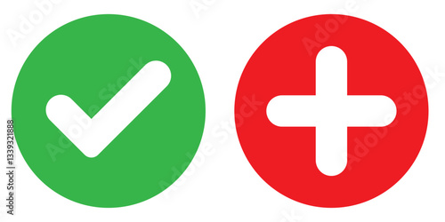 check mark icon button set. check box icon with right and wrong buttons and yes or no checkmark icons in green tick box and red cross