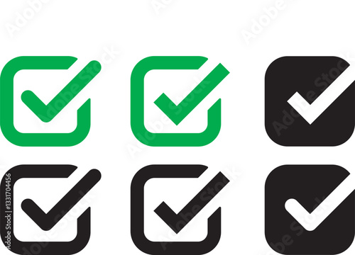 Check mark icon set with right buttons, yes checkmarks, green ticks. Ideal for UI, UX, web, and app design