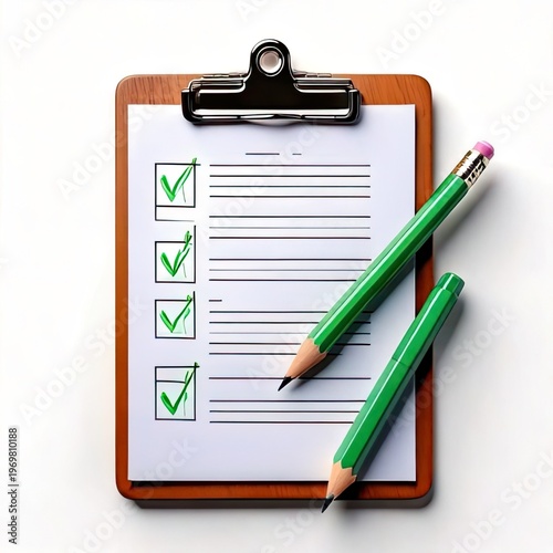 Checklist on clipboard with pencils, completed items