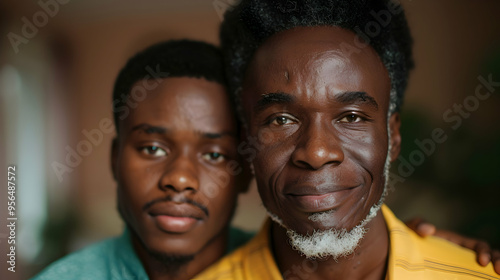 Cheerful African American Man Hugging Mature Dad