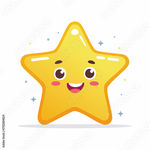 Cheerful golden star character smiling brightly, radiating positive energy and happiness, perfect for children's illustrations, education, and festive designs