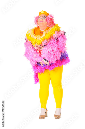 Cheerful man, Drag Queen, in a Female Suit