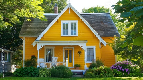 Cheerful yellow house exterior with white trim