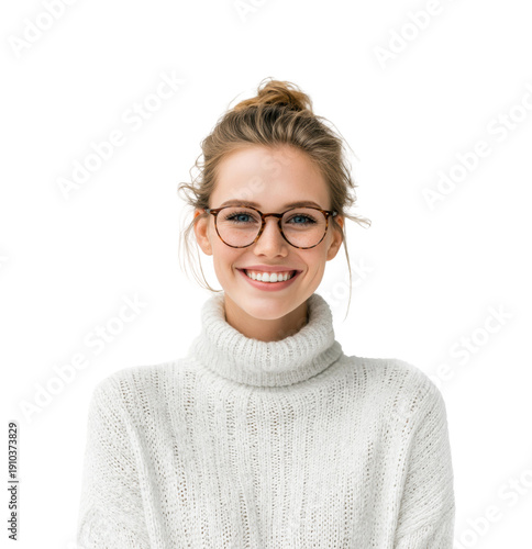 Cheerful young woman smiling portrait bright environment, isolated on transparent background, png
