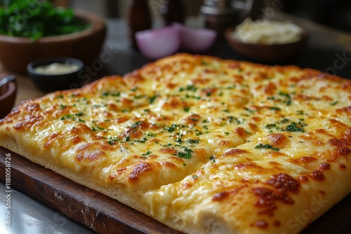 Cheesy Garlic Bread with Golden Brown Crust and Herbs
