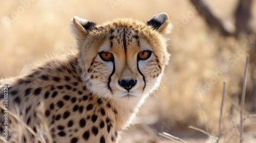 Cheetah Staring Intently in Sunlit Savanna With Warm Golden Tones : Generative AI