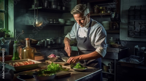 Chef in the kitchen with fresh vegetables. Generative AI.