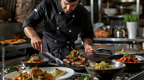 Chef Preparing Food in a Restaurant Kitchen