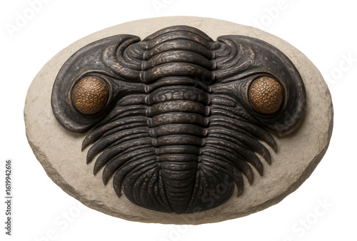 Cheirurus trilobite with crescentic cephalon and complex eye structure