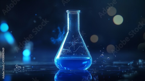 Chemistry Glass Lab Flask with Chemical Blue Liquid - Science