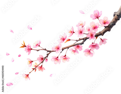 Cherry Blossom Branch with Falling Petals – Watercolor Side View
