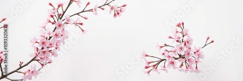 Cherry blossom branches with a touch of pink are artfully placed against a white wall, natural elements, white wall