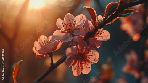 Cherry Blossom Elegance, close-up view of delicate pink cherry blossoms in full bloom, capturing the essence of spring's arrival and the beauty of nature's renewal