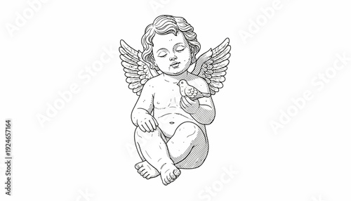 Cherubic Angel Holding a Bird, Vintage Illustration
