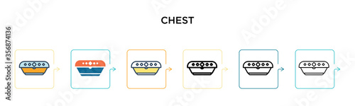 Chest vector icon in 6 different modern styles. Black, two colored chest icons designed in filled, outline, line and stroke style. Vector illustration can be used for web, mobile, ui