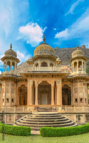 Chhatri of Gaitor, cenotaph for the royal family, Jaipur, Rajasthan, India,