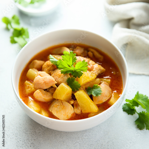Chicken ragout with pineapple and spices