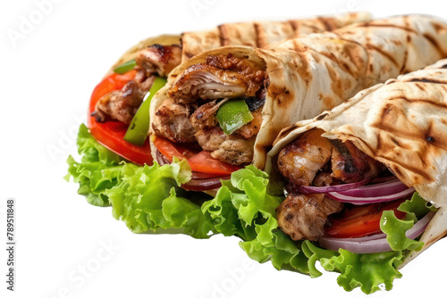 Chicken shawarma doner kebab on isolated white background. Transparent background