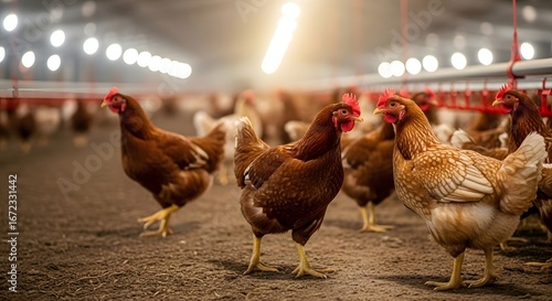 Chickens Roaming Freely Inside a Well-Lit Poultry Farm