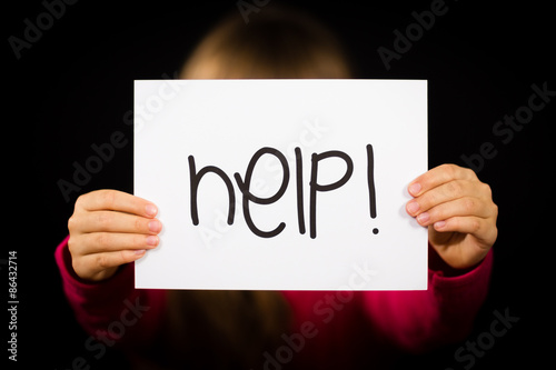 Child holding Help sign