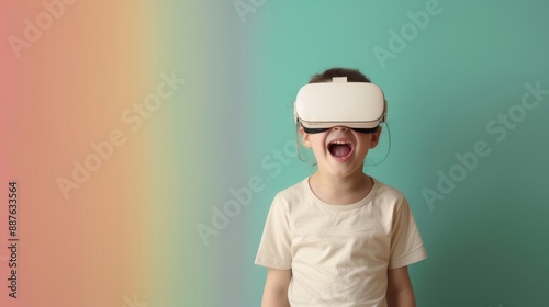 Child in Classroom Using VR and Experiencing Virtual Environments. Virtual Learning. Back to School.