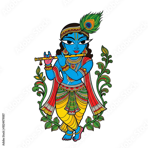 Child krishna playing flute isolated on transparent background