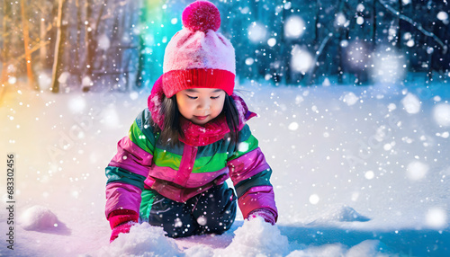 child playing in snow