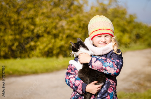 child with cat