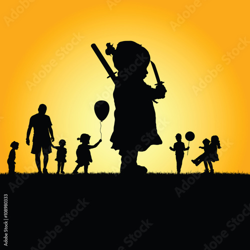 children in nature illustration silhouette