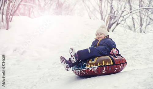 Children in the park in winter. Kids play with snow on the playground. They sculpt snowmen and slide down the hills.