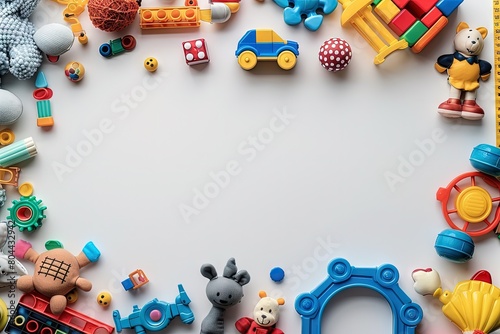 Children's toys and accessories on a grey background