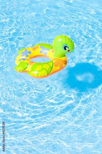 child's green rubber ring in swimming pool