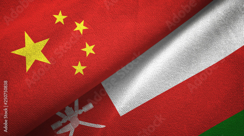 China and Oman two flags textile cloth, fabric texture
