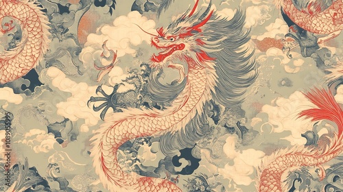 Chinese dragon and phoenix wallpaper design home decor digital art elegant setting contemporary vibe cultural aesthetics