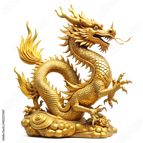 Chinese golden dragon statue isolated on white background PNG.AI Generated.