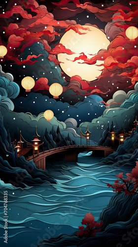 Chinese lanterns lanterns florals birds stars and red background,New Year Celebration, Chinese New year, Chinese New year Celebratin