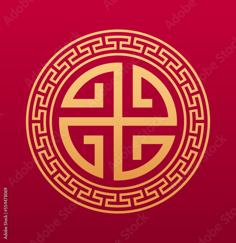 Chinese round geometric decorative element. Asian symbol with curved golden lines